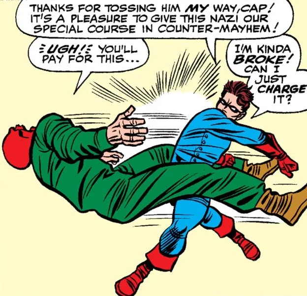 In fascism’s full manifestation, Captain America and Bucky had no choice but to confront the ideology with brute force. 1941 was a time for military action. Fascism had grown beyond infancy; by 1941, it had learned to walk, talk, and wield munitions. The only way forward was to physically strike fascists and halt their advance through military action.